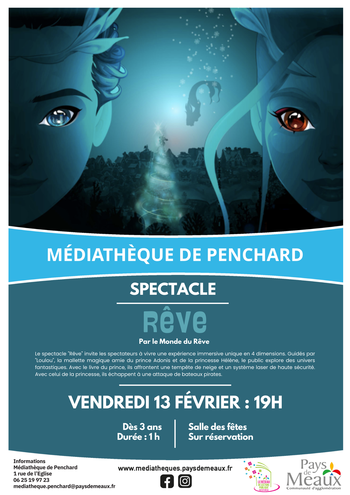 La médiathèque propose, avec le Monde du Rêve, un spectacle "Rêve" le vendredi 13 février à 19h à la salle des fêtes de Penchard.